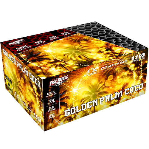 110 Schots multishape madness! Palmboeketten, gouden regens en tropische vibes! Ga voor goud met deze harde knal-Coco!